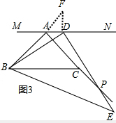 (2)过点D作DF⊥MN,交AB的延长线于点F,证得△BDF≌△PDA,可以证明BD=DP;
