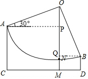 分析 如图,作AP⊥OM、BQ⊥OM,可得AC=PM=10、BD=QM=3、PQ=PM-QM=7,设OA=x,可得OP=$\frac{1}{2}$OA=$\frac{1}{2}$x、AP=OAcos∠OAP=$\frac{\sqrt{3}}{2}$x,证△AOP≌△BOQ得AP=OQ,即$\frac{\sqrt{3}}{2}$x=$\frac{1}{2}$x+7,解之可得x的值;由MN=OP+PM-OQ可得答案.