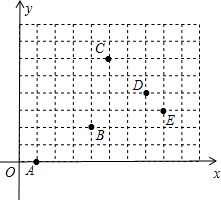 解答 解:如图:(1)(4,2)表示点B,(5,6)表示点C;(2)D、E两点的位置可分别表示为(7,4),(8,3);(3)从A点运动到B点的路径可为:(1,0)→(2,0)→(3,0)→(4,0)→(4,1)→(4,2).