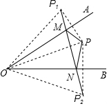 解:∵P点关于OA、OB的对称点P1,P2,连接P1P2交OA于M,交OB于N,