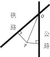 13、某学校到公路距离与到铁路的距离是相等的,并且到公路和铁路相交处O点的距离是5千米.在图中标出学校P的位置,理由是