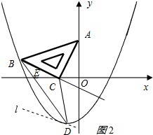 作直线l∥BC,交抛物线于D,如图2所示:![]()