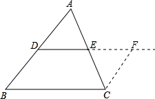 分析 延长DE至F,使EF=DE,连接CF,通过证明△ADE≌△CFE和证明四边形BCFD是平行四边形即可证明三角形的中位线平行于三角形的第三边并且等于第三边的一半.