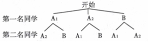 (3)设两名女生分别用A1,A2,一名男生用B表示,树状图如下:![]()