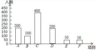 答:全市学生中选择体育锻炼的人数约有16000人.