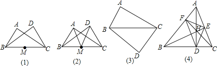 如图(1),△ABC与△DBC中,∠A=∠D=90°,M为BC中点,试说明点A、B、C、D在以点M为圆心的同一个圆上.