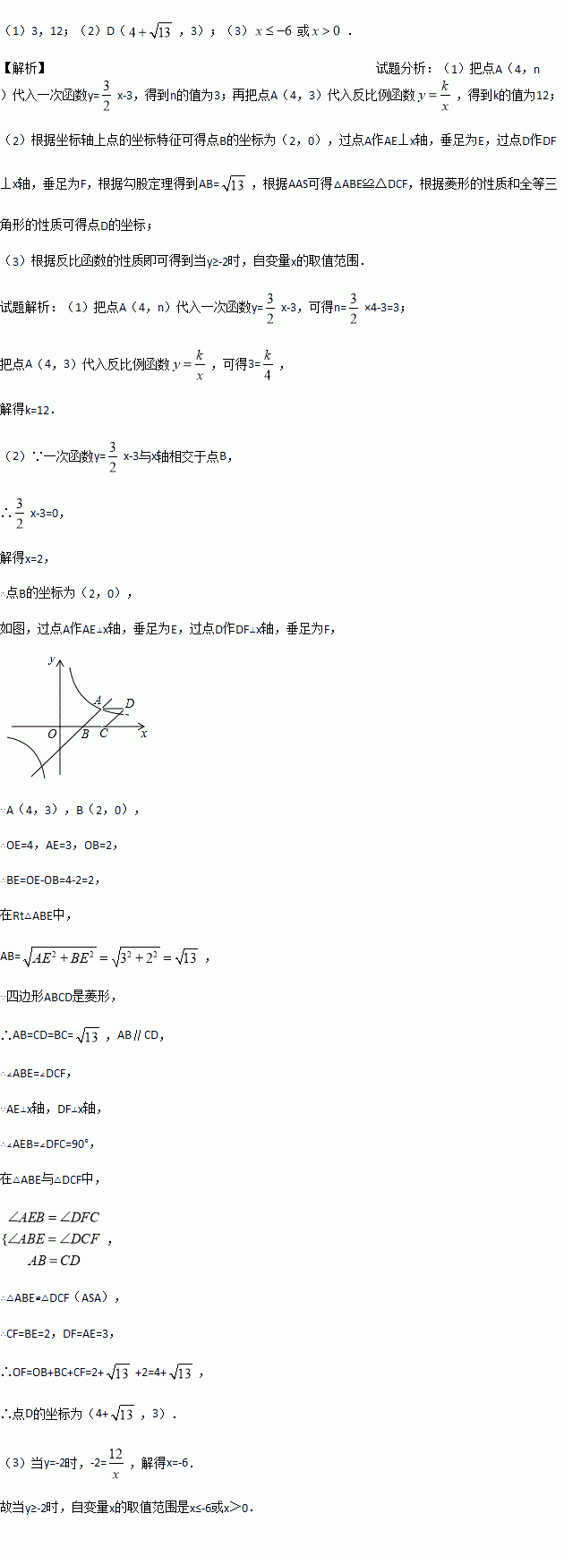 (2)以AB为边作菱形ABCD,使点C在x轴正半轴上,点D在第一象限,求点D的坐标;