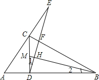分析 (1)由于△ABC是直角三角形,易得∠A+∠ABC=90°,而CD⊥AB,易得∠MCB+∠ABC=90°,利用同角的余角相等可得∠A=∠MCB,同理可证∠1=∠2,而∠ADE=90°+∠1,∠CMB=90°+∠2,易证∠ADE=∠CMB,从而易证△AED∽△CBM;