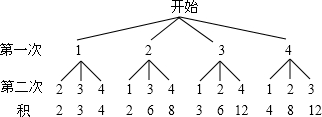 分析:根据题意画出树状图,然后根据概率公式列式进行计算即可得解.