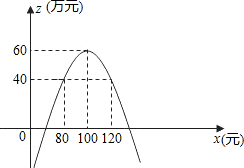 ÓÉͼÏó¿ÉÖª£¬ÒªÊ¹Äê»ñÀû²»µÍÓÚ40ÍòÔª£¬ÏúÊÛµ¥¼ÛÓ¦ÔÚ80Ôªµ½120ÔªÖ®¼ä£¬