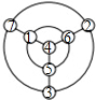 请你将数字1,2,3,4,5,6,7填入图中的圆圈内,使每条边上的三个数字之和以及两个圆上的三个数字之和都等于12.