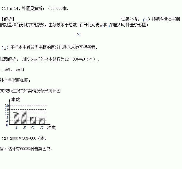 (2)本次活动师生共捐书2000本,请估计有多少本科普类图书?