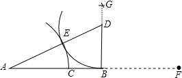 解答 解:作法:(1)延长线段AB至F,使AB=BF,分别以A、F为圆心,以大于等于线段AB的长为半径作弧,两弧相交于点G,连接BG,则BG⊥AB,在BG上取点D,使BD=$\frac{AB}{2}$,