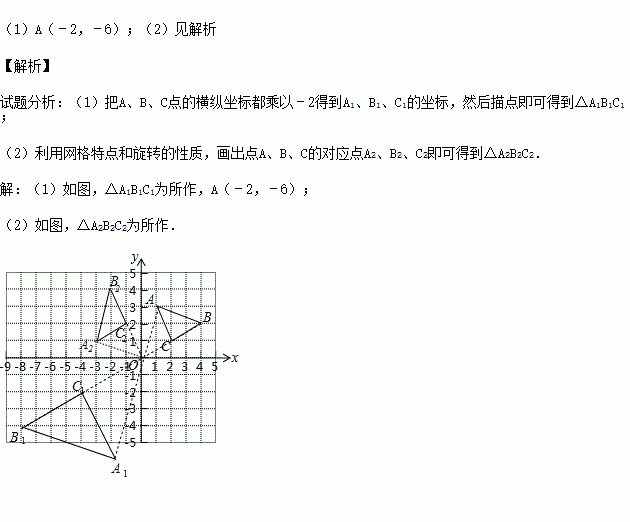 (1)在图中以点O为位似中心在原点的另一侧画出△ABC放大2倍后得到的△A1B1C1,并写出A1的坐标;