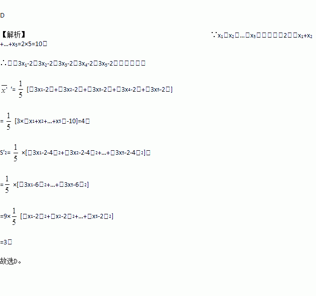 ,那么另一组数据3x1﹣2,3x2﹣2,3x3﹣2,3x4﹣2,3x5﹣2的平均数和方差分别是( )