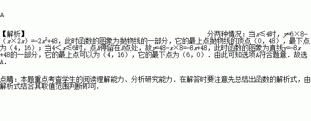 矩形ABCD中,AD=8cm,AB=6cm.动点E从点C开始沿边CB向点B以2cm/s的速度运动,动点F从点C同时出发沿边CD向点D以1cm/s的速度运动至点D停止.如图可得到矩形CFHE,设运动时间为x(单位:s),此时矩形ABCD去掉矩形CFHE后剩余部分的面积为y(单位:cm2),则y与x之间的函数关系用图象表示大致是下图中的( )
