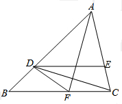 (2)由于△ADF≌△ACF利用全等三角形的性质,得DF=CF,则∠FDC=∠DCF,因为DE∥BC,利用平行线的性质,∠EDC=∠DCF,所以∠FDC=∠EDC,即CD平分∠FDE.