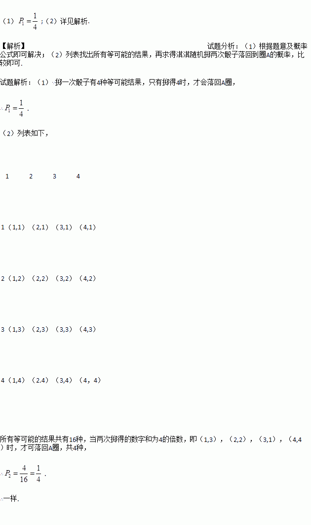 £¨2£©ä¿ä¿Ëæ»úÖÀÁ½´Î÷»×Ó£¬Çó×îºóÂ仨µ½È¦AµÄ¸ÅÂÊP2£¬²¢Ö¸³öËýÓë¼Î¼ÎÂ仨µ½È¦AµÄ¿ÉÄÜÐÔÒ»ÑùÂð£¿