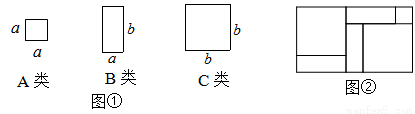 (1)取图①中的若干个(三种图形都要取到)拼成一个长方形,使它的边长分别为(2a+b)、(a+2b),不画图形,试通过计算说明需要C类卡片多少张;