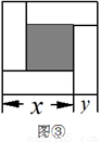 (3) 如图③,大正方形的边长为m,小正方形的边长为n,若用x、y表示四个矩形的两边长(x>y),观察图案并判断,将正确关系式的序号填写在横线上______ _____(填写序号)