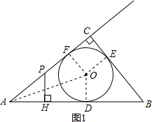 (2)当点P在线段AC上时,通过相似三角形△AHP∽△ACB的对应边成比例知,$\frac{PH}{BC}$=$\frac{AP}{AB}$=$\frac{AC-PC}{AB}$,将“PH=x,PC=y”代入求出即可求得y关于x的函数关系式;(3)分两种情况,当P在线段AC上时,根据圆的切线定理证得四边形OMH′D、四边形CFOE为正方形;然后利用正方形的性质、圆的切线定理推知P′H′=P′M+MH′=P′F+FC=P′C,即x=y;最后将其代入(2)中的函数关系式即可求得y值,即PC的长;当P在线段AC的延长线上时,同理,利用相似三角形的性质求得y关于x的函数关系式,同理可求得y值,即PC的长.