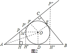 (3)①当点P在线段AC上时,如图2,P′H′与⊙O相切.![]()
