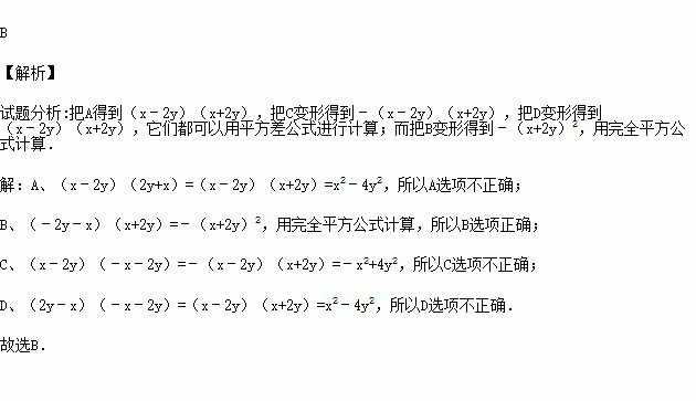 A.(x﹣2y)(2y+x) B.(﹣2y﹣x)(x+2y)