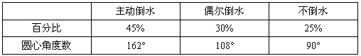 | 下表是某中学七年级(4)班的同学就“父母回家后,你会主动给他们倒一杯水吗?”情况调查结果,请你按照要求用扇形统计图表示该调查结果. | ||||||||||||