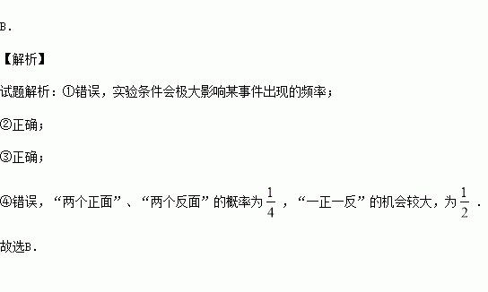 ④抛掷两枚质量分布均匀的相同的硬币,出现“两个正面”、“两个反面”、“一正一反”的机会相同.