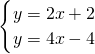∵直线y=2x+2与直线y=4x-4交于点E,