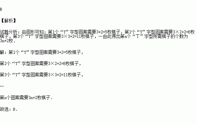 (2015秋•孝义市期末)如图是用棋子摆成的“Τ”字图案.从图案中可以看出,第1个“Τ”字型图案需要5枚棋子.第2个“Τ”字型图案需要8枚棋子.第3个“Τ”字型图案需要11枚棋子,则第n个“Τ”字型所需棋子的个数( )