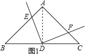 ∴∠DAB=∠DAC=$\frac{1}{2}$∠BAC=45°,AD⊥BC,
