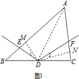 如图3,过点D作DM⊥AB于M,作DN⊥AC于N,连接AD,![]()