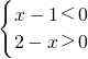 在平面直角坐标系中,点A(x-1,2-x)关于y轴对称的对称点在第一象限,则实数x的取值范围是________.
