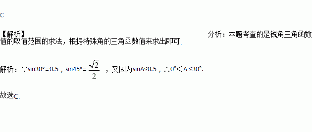A. 0°≤A≤60° B. 60°≤A <90° C. 0°<A ≤30° D. 30°≤A≤90°