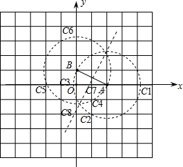 分析 若线段AB为腰,以点A为圆心,AB为半径的圆与坐标轴有三个交点,以点B为圆心,AB为半径的圆与坐标轴有三个交点;若线段AB为底边,作线段AB的垂直平分线与坐标轴有两个交点,所有与坐标轴的交点都是满足条件的C点.