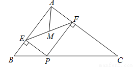 如图,在△ABC中,AB=3,AC=4,BC=5,P为边BC上一动点,PE⊥AB于E,PF⊥AC于F,M为EF中点,则AM的最小值为( )