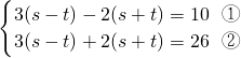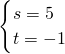 ①-②,得s+t=4,