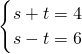 ①+②,得s-t=6,