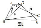 (2)证明:如图2,过点A作AF⊥AD,交DB的延长线于点F,![]()