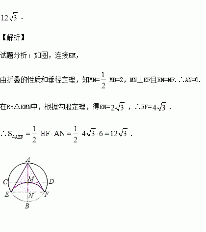 将一张半径为4的圆形纸片(如图①)连续对折两次后展开得折痕AB、CD,且AB⊥CD,垂足为M(如图②),之后将纸片如图③翻折,使点B与点M重合,折痕EF与AB相交于点N,连接AE、AF(如图④),则△AEF的面积是__________.