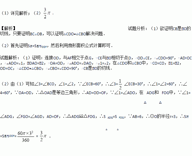 (1)求证:CB是⊙O的切线;