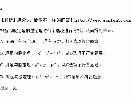 C. a=6 ,b=8 , c= 10; D. a= 15,b=8 , c=17