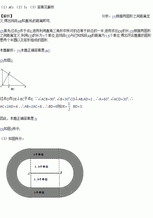 (3)如图3,若长为1个单位的线段CD与已知线段AB的距离为1.5个单位长度,请用适当的方法表示满足条件的所有线段CD.