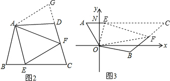 (2)延长FD到G,使DG=BE,连接AG,根据同角的补角相等求出∠B=∠ADG,然后利用“边角边”证明△ABE和△ADG全等,根据全等三角形对应边相等可得AE=AG,∠BAE=∠DAG,再求出∠EAF=∠GAF,然后利用“边角边”证明△AEF和△GAF全等,根据全等三角形对应边相等可得EF=GF,然后求解即可;