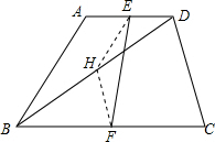 解答 证明:取BD的中点H,连接HE、HF,∵E是AD的中点,H是BD的中点,∴EH=$\frac{1}{2}$AB,同理,HF=$\frac{1}{2}$CD,∵EF<EF+FH,∴EF<$\frac{1}{2}$(AB+CD).