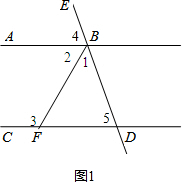 分析 首先根据AB∥CD,可得∠4=∠5;然后根据∠1:∠2:∠3=1:2:3,可得∠3=∠1+∠2,再根据三角形的外角的性质,可得∠3=∠1+∠5,据此判断出∠2=∠4,即可判断出BA平分∠EBF.