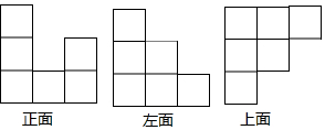 分析 (1)观察图形可知,从正面看到的图形是3列,从左往右正方形的个数依次为3,1,2;从左面看到的图形是3列,从左往右正方形的个数依次为3,2,1;从上面看到的图形是3列,从左往右正方形的个数依次为3,2,1;由此分别画出即可;(2)利用几何体的形状得出小正方形的个数进而得出表面积.