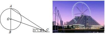 如图,点O是摩天轮的圆心,长为110米的AB是其垂直地面的直径,小莹在地面C点处利用测角仪测得摩天轮的最高点A的仰角为33°,测得圆心O的仰角为21°,则小莹所在C点到直径AB所在直线的距离约为(tan33°≈0.65,tan21°≈0.38)( )