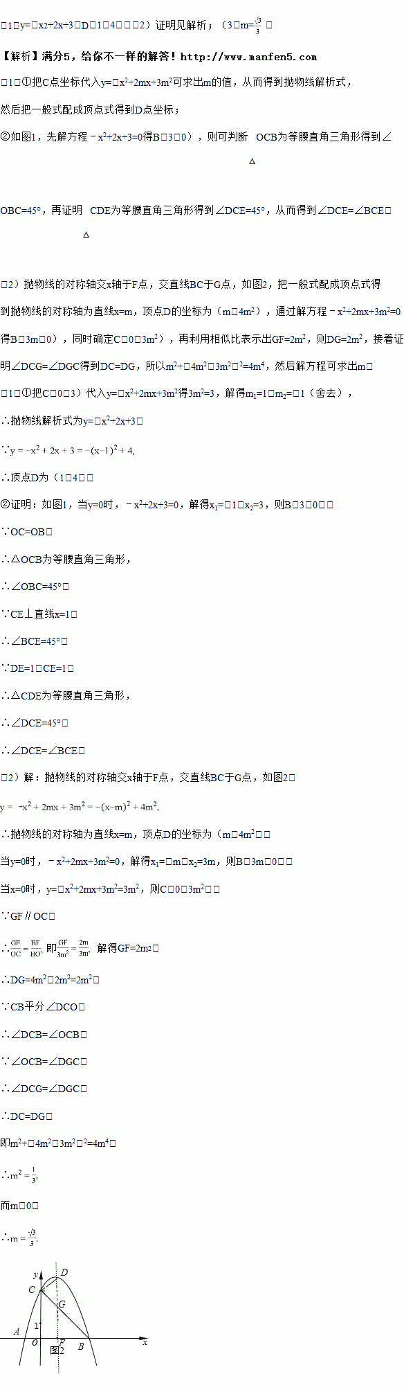 平面直角坐标系xOy(如图),抛物线y=﹣x2+2mx+3m2(m>0)与x轴交于点A、B(点A在点B左侧),与y轴交于点C,顶点为D,对称轴为直线l,过点C作直线l的垂线,垂足为点E,联结DC、BC.